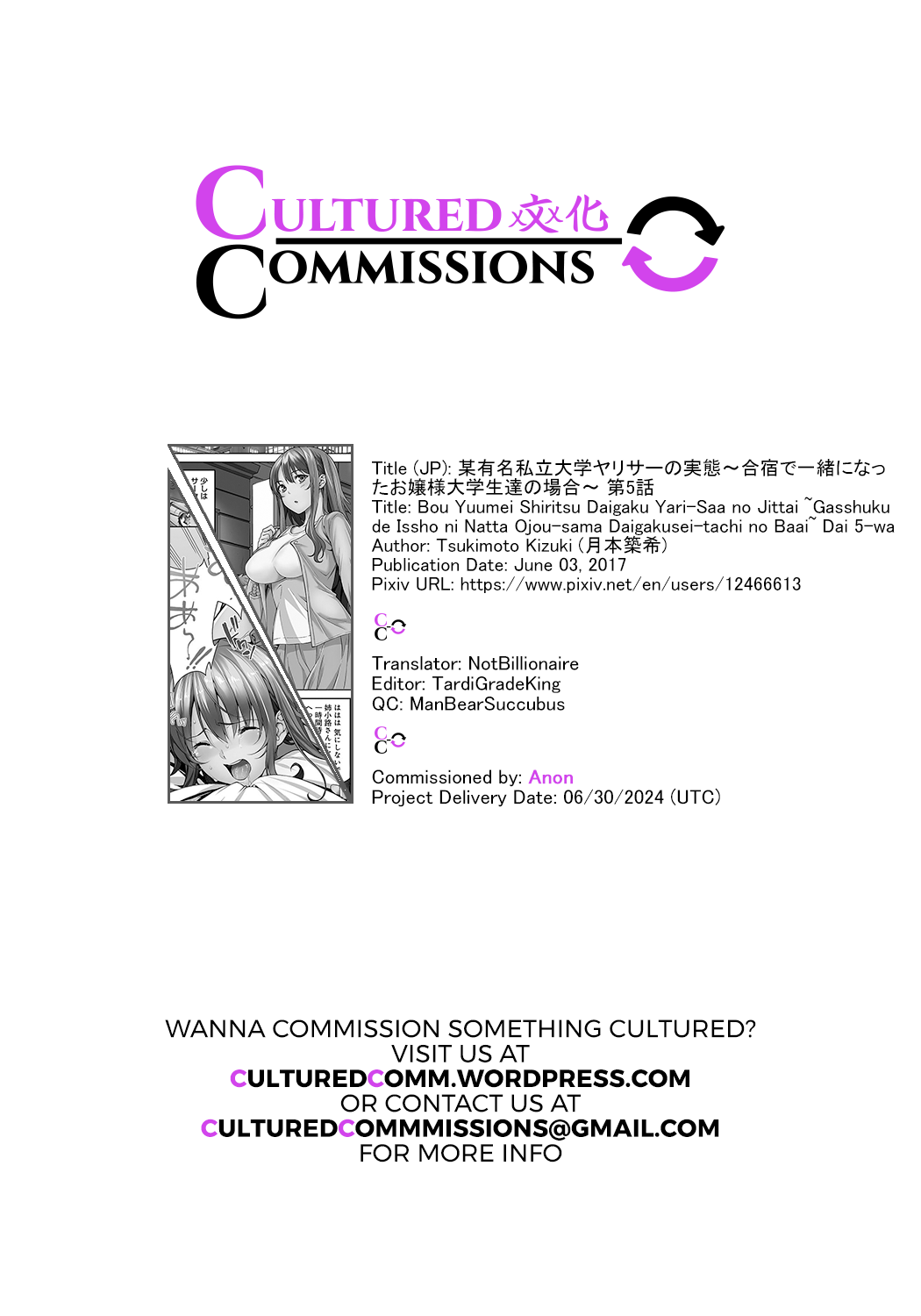 [Tsukimoto Kizuki] Bou Yuumei Shiritsu Daigaku YariCir no Jittai ~Gasshuku de Issho ni Natta Ojou-sama Daigakusei-tachi no Baai~ Ch. 5 [English] [CulturedCommissions]某有名私立大学ヤリサーの実態~合宿で一緒になったお嬢様大学生達の場合~ 第5話 [英訳]#518945 Parodies: original85K Characters: Tags: big breasts164Kfull color63Krape51Kmulti-work series35K Artists: tsukimoto kizuki62 Groups: Languages: translated205Kenglish112K Categories: doujinshi376KPages: 26 Uploaded: 1 month ago