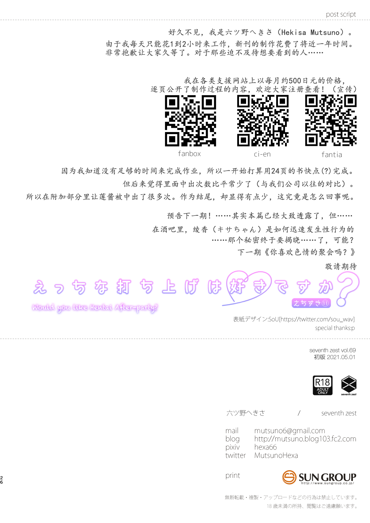 [seventh zest (Mutsuno Hexa)] Ecchi na Uchiage wa Suki desu ka? [Digital][seventh zest (六ツ野へきさ)] えっちな打ち上げは好きですか? [DL版]#528393 Parodies: original86K Characters: Tags: nakadashi81Kfull color64Krough translation1K Artists: mutsuno hexa45 Groups: seventh zest38 Languages: translated207Kchinese108K Categories: doujinshi380KPages: 29 Uploaded: 31 seconds ago
