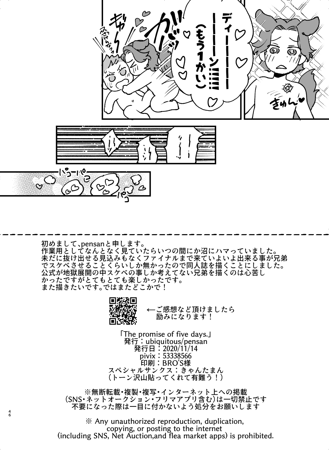 [ubiquitous (pensan)] The promise of five days. (Supernatural) [Digital][ubiquitous (pensan)] 5日間の約束 (Supernatural) [DL版]#513523 Parodies: supernatural4 Characters: dean winchester3samuel winchester1 Tags: anal95Kyaoi48Kmales only41Kincest40Kmuscle18Kanal intercourse14K Artists: Groups: Languages: japanese268K Categories: doujinshi368KPages: 46 Uploaded: 27 seconds ago