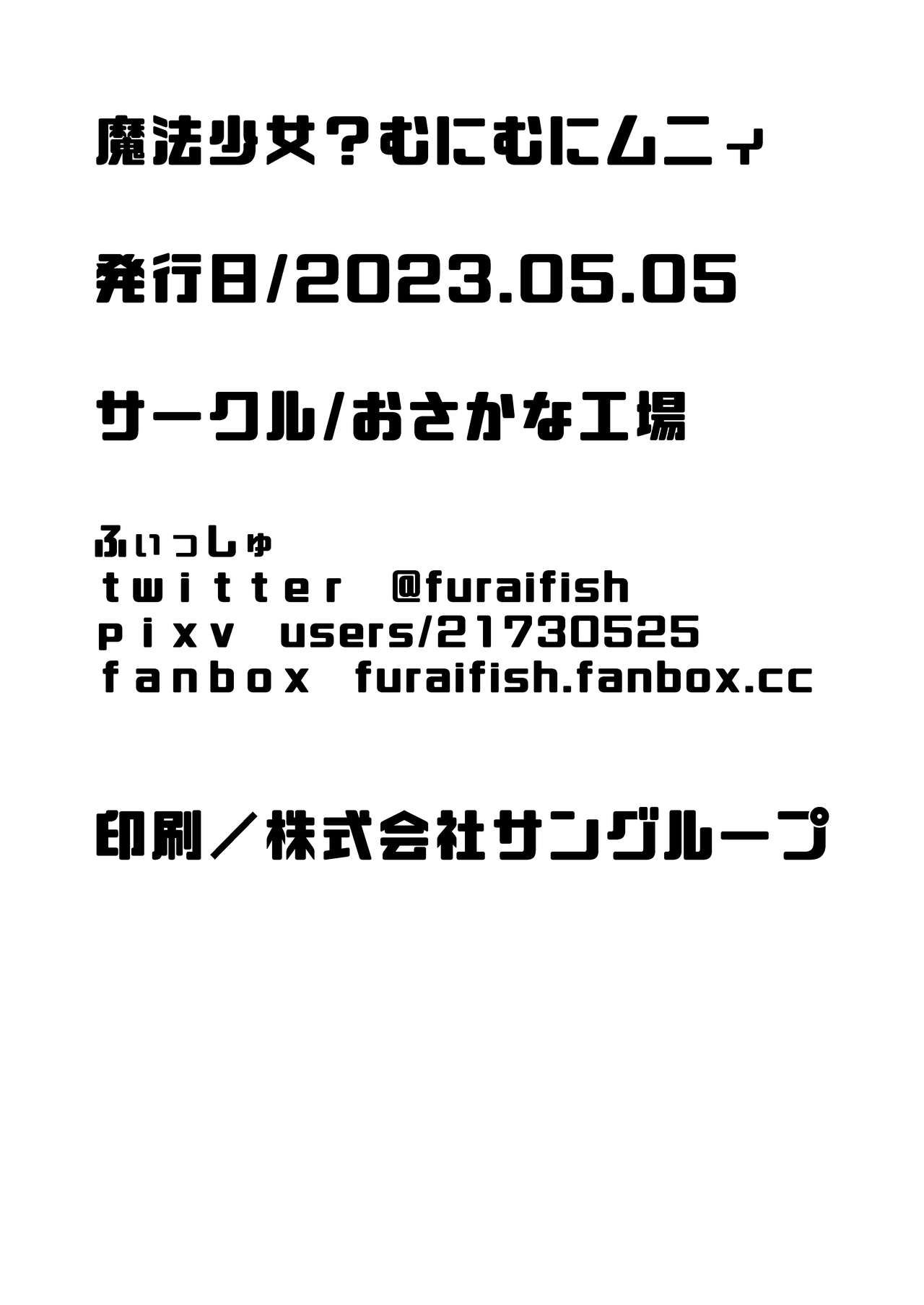 [osakana koujou(Filet-O-Fish)] mahou shoujo? muni muni muni[おさかな工場(ふぃっしゅ)] 魔法少女?むにむにムニィ#522003 Parodies: Characters: Tags: bondage47Kmagical girl4K Artists: filet-o-fish3 Groups: Languages: japanese271K Categories: doujinshi374KPages: 27 Uploaded: 19 seconds ago
